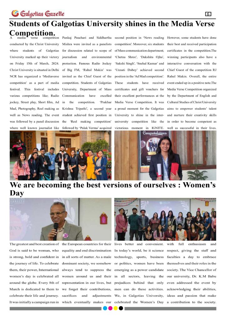Galgotias Gazette March-2024 1st Edition Gajendra Pratap 12 April 2024 0 0 Read Time:0 Second Share Facebook Twitter Pinterest LinkedIn About Post Author Gajendra Pratap gajendra.pratap@galgotiasuniversity.edu.in https://yuvajunction.co.in/ Happy 0 0 % Sad 0 0 % Excited 0 0 % Sleepy 0 0 % Angry 0 0 % Surprise 0 0 % Post navigation Previous Previous post: The inauguration of the Innovation, Design, and Entrepreneurship (IDE) Bootcamp for school teachers was held at Galgotias University.Next Next post: March-2024 2nd Edition Average Rating 5 Star0%4 Star0%3 Star0%2 Star0%1 Star0% (Add your review) Leave a Reply Cancel replyYour email address will not be published. Required fields are marked *Comment * Rating* 5 4 3 2 1 0 Name * Email * Website Save my name, email, and website in this browser for the next time I comment. Related News Galgotias Gazette Galgotias Gazette-April 2025 28 July 2025 0 Galgotias Gazette Galgotias Gazette- March, 2025 13 May 2025 0